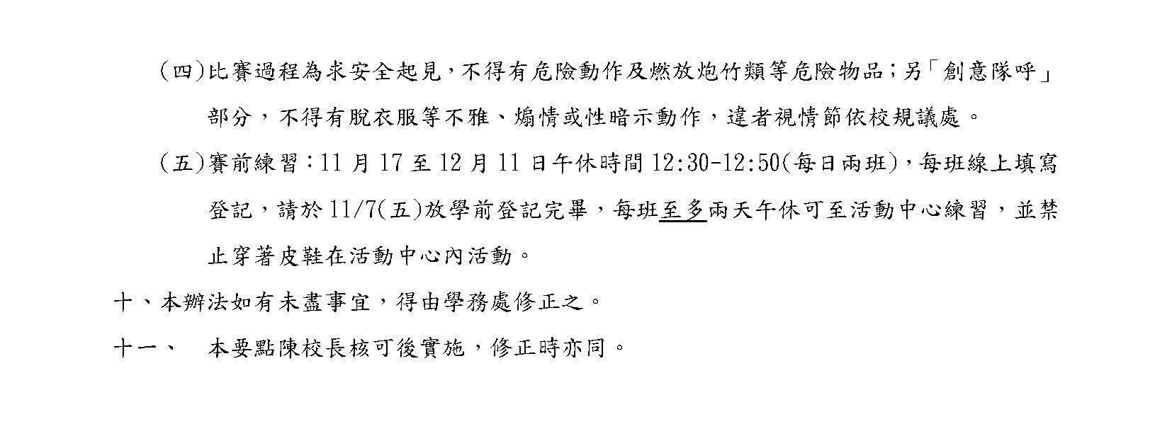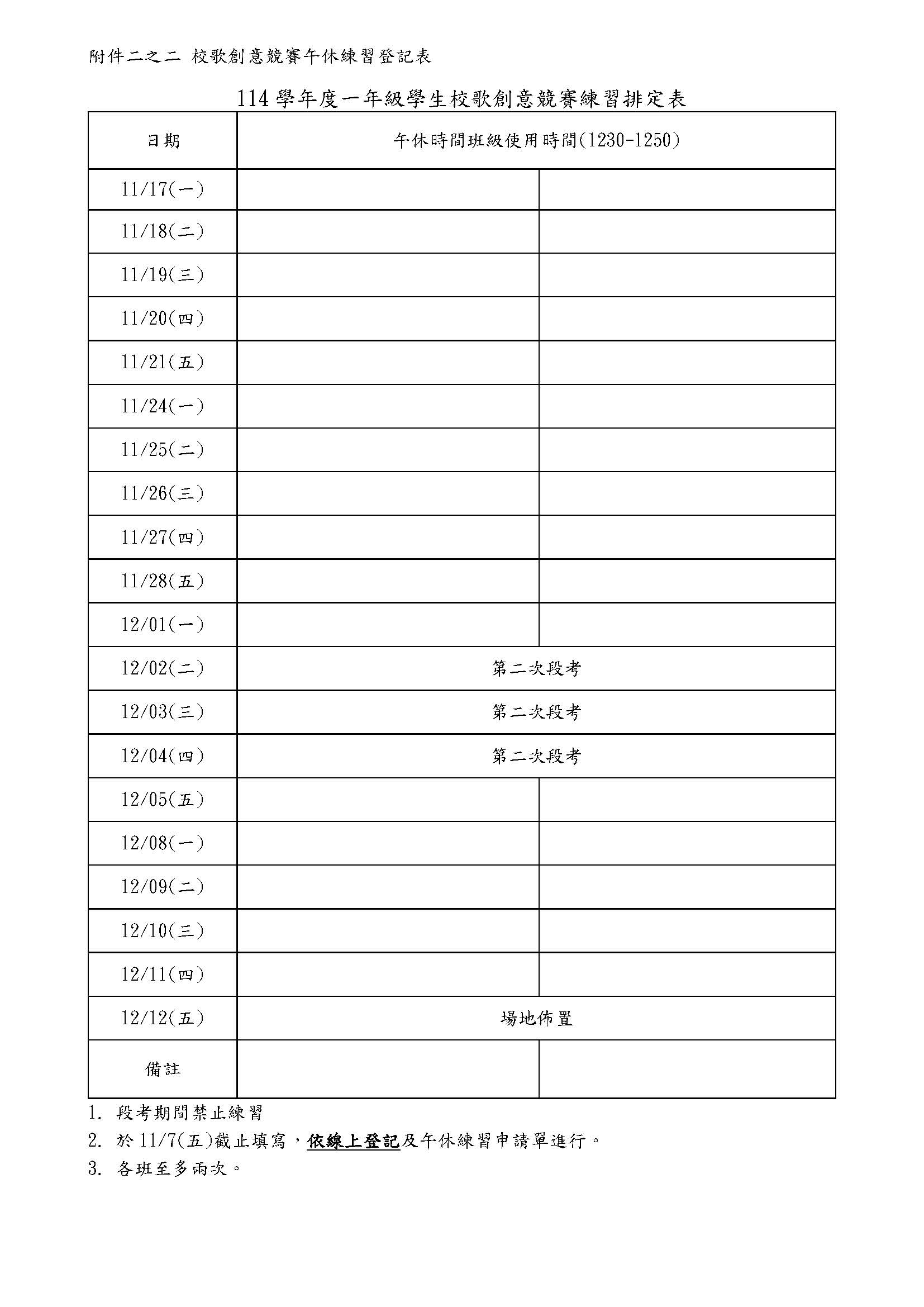 (10/21(二)中午12:30開放、於11/7(五)填寫截止,也要送午休練習申請表唷)