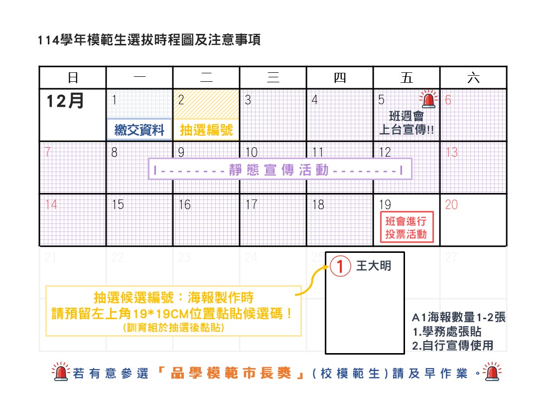 三、校模範生預計於12/19(五)班會課進行全校票選。