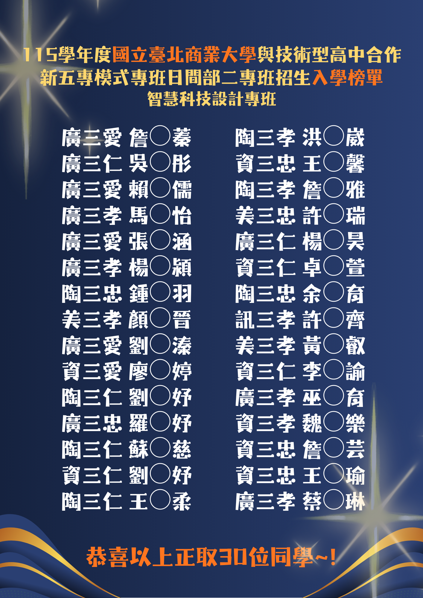💖115學年度北商大新五專 智慧科技設計專班錄取榜單💖👌